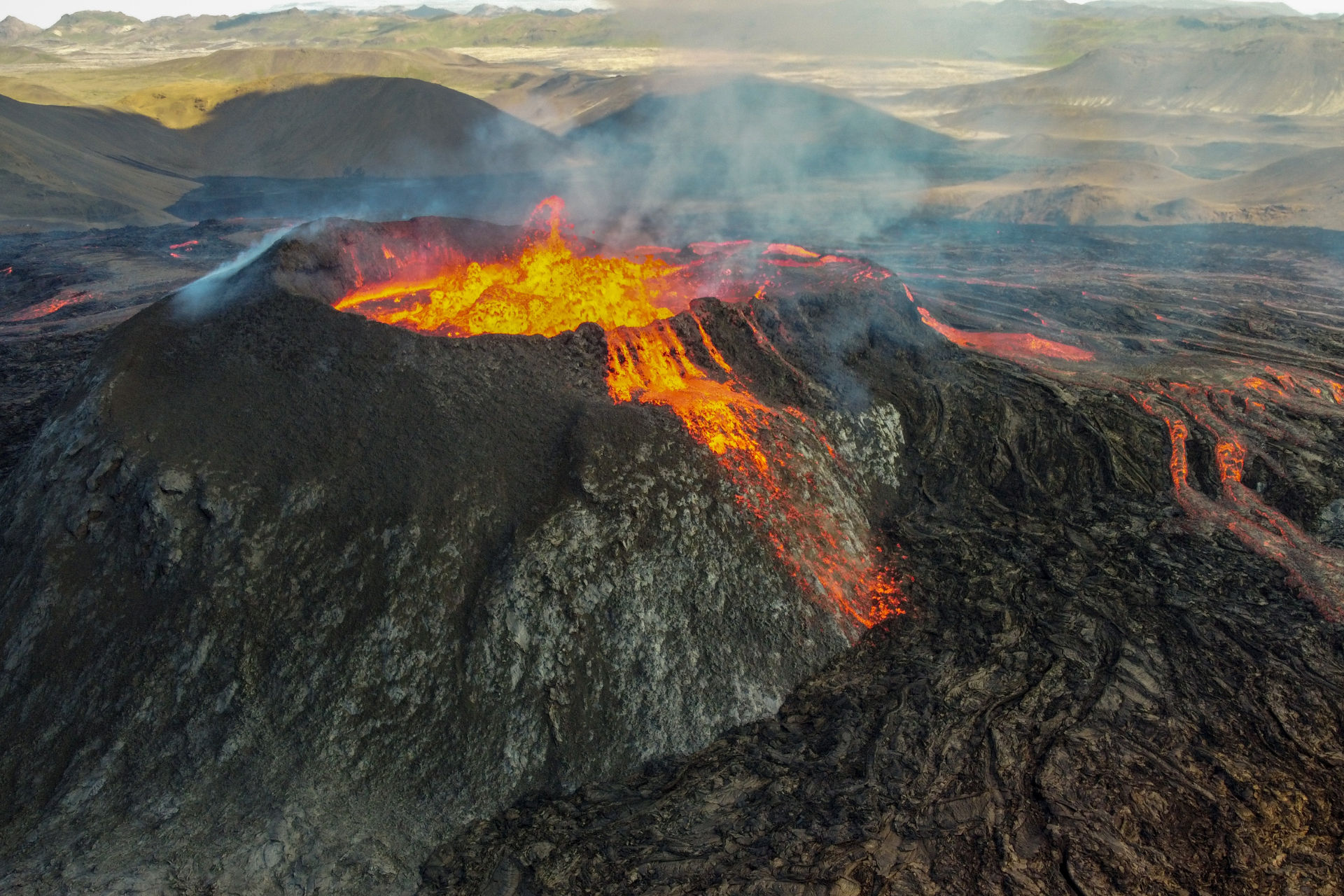 En aktif Hawai yanardağları Büyük Ada'dadır. Buradaki yanardağlardan biri olan Kilauea, adanın güney bölgesinin çoğunu yeniden su yüzüne çıkaran kalın lav akıntılarını püskürtmeye devam ediyor. Bu dağın kenarındaki bir "bacadan" çıkan son patlamalar, Büyük Ada'daki köyleri ve evleri yıktı. Volkanlar ayrıca Japonya'nın güneyinden Yeni Zelanda'ya kadar Pasifik Okyanusu havzasında da patlar. Havzadaki en volkanik alanlar plaka sınırları boyunca uzanır ve bu bölgenin tamamına "Ateş Çemberi" denir. Avrupa'da Sicilya'daki Etna Dağı, MS 79'da Pompeii ve Herculaneum'u gömen yanardağ Vesuvius gibi, oldukça aktiftir. Bu dağlar, depremler ve ara sıra meydana gelen akışlarla çevredeki bölgeleri etkilemeye devam ediyor.